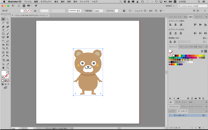 ※配置サイズが小さくても画像データの容量は2,100dpi相当になり、配置したイラストレーターのファイルサイズが大きくなりすぎて保存やデータ送信に時間がかかってしまいます。