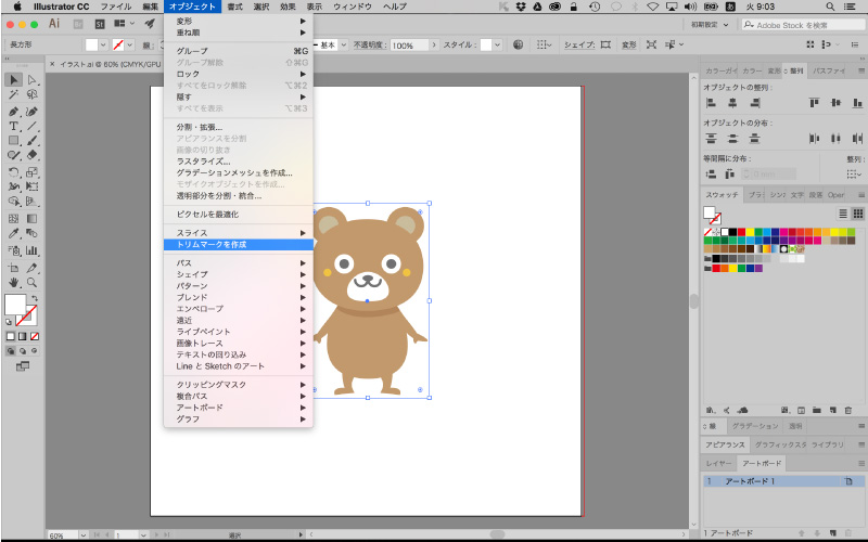 - 塗りと線のカラーをなしにして[ オブジェクト ] → [ トリムマークを作成 ]を選択