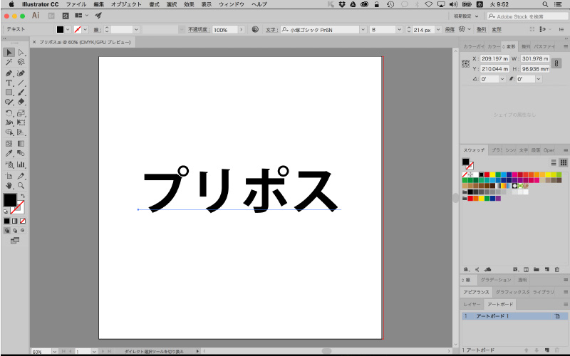 Adobe社の「イラストレーター(Illustrator)」で印刷データを制作する際は、文字入力をしたフォントをアウトライン化(図形化)する必要がございます。