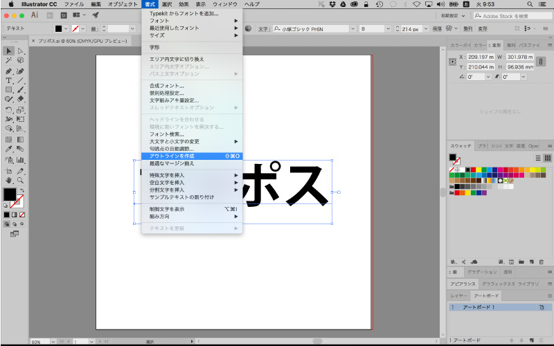 なぜなら、フォントの情報が残ったまま入稿してしまうと、印刷側のパソコンにそのフォントが装備されていない場合、別のフォントに置き換わってしまうからです(※)。
