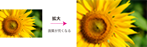 - 拡大することで解像度が下がってしまい画像が劣化してしまう場合