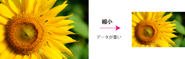 - 配置画像を縮小することで解像度が上がってしまいデータが重くなる場合