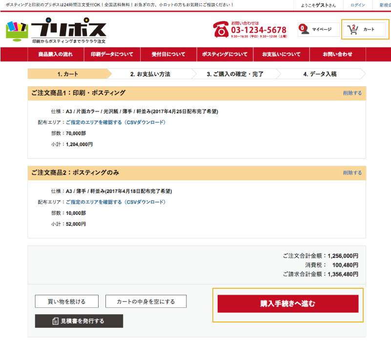 商品購入の流れ:印刷・ポスティング購入の場合