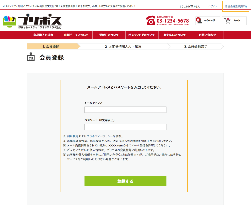 まるポスでポスティングをご注文していただくには、事前に「会員登録」が必要です。